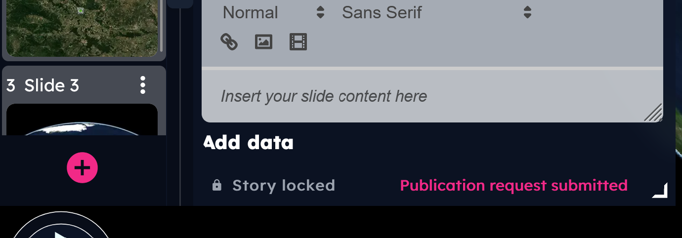 By clicking on the Request publication button, users will see a confirmation notification — either a success message or an error message asking to try again. Once submitted successfully, the button will be replaced with a tag, and the story will be locked until the review board’s outcome.