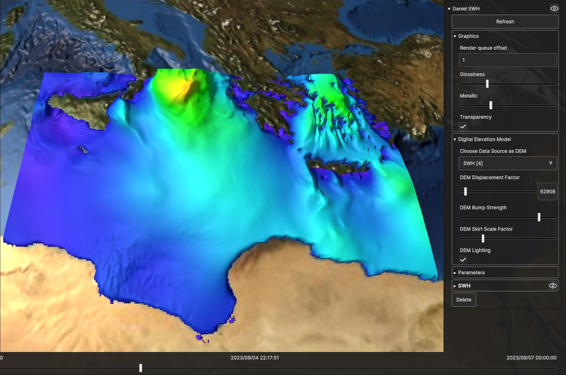 Fig. 5.13 Digital Elevation Model for SWH Data Source, with low bump strength and low displacement