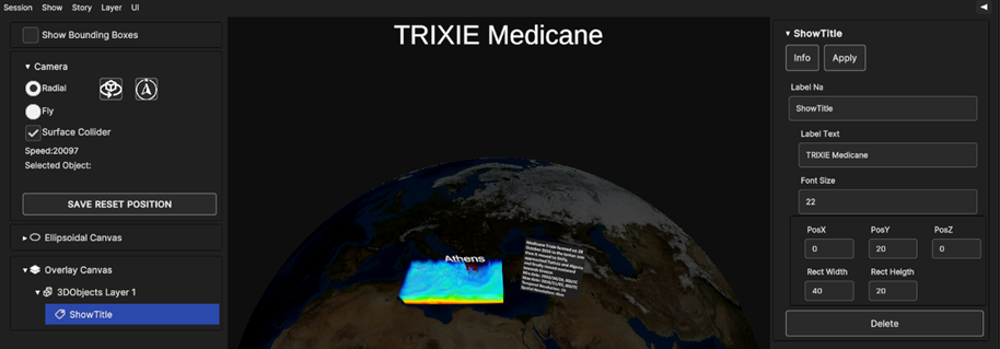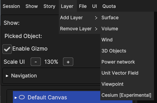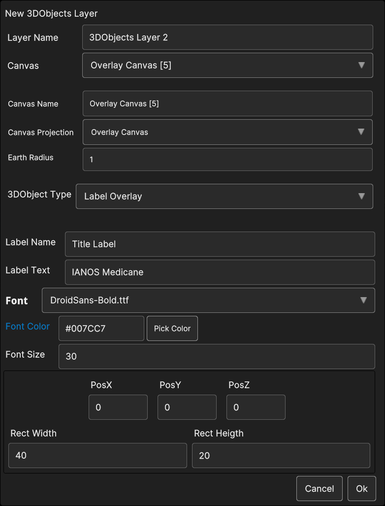 The Overlay Canvas can only be created or selected when the user adds an overlay image or label Data Source to a 3D Objects Layer. It does not apply to other types of Layers and Data Sources.