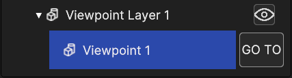 A viewpoint in the scene displays a special button in the hierarchy, the GO TO button which sets the camera position in correspondence of the position and rotation of the viewpoint, and setting the current time to the viewpoint time.