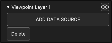 The Viewpoint Layer Inspector Panel provides the options to add a viewpoint, through the Add Data Source Button, which opens up the relative panel, and to delete it with the Delete button.