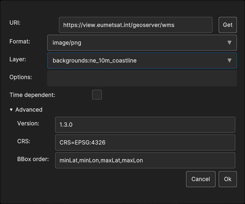 5.3.2.1. WMS Data Source Inspector Panel UI