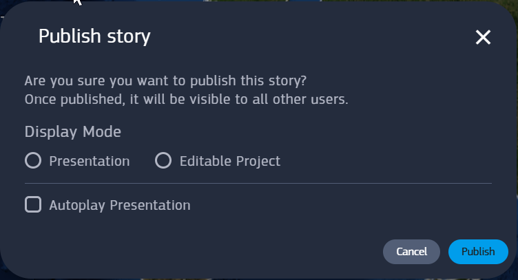 When publishing a story it’s asked to choose the default display mode, and in case of presentation, whether enabling the autoplay.